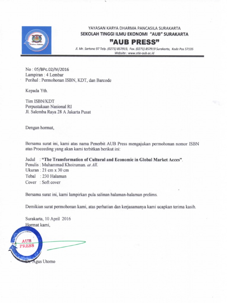 Surat Permohonan Isbn Dan Daftar Lampiran Pengajuan Isbn
