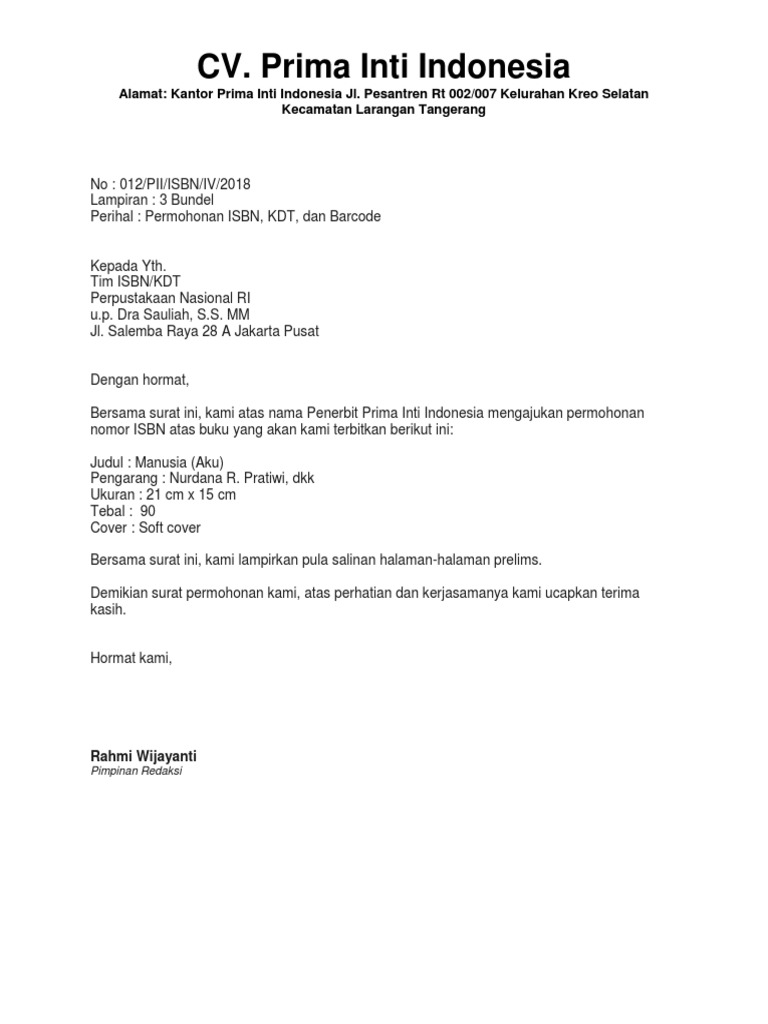 See more ideas about surat pdf quotation sample. Permohonan ISBN KDT dan Barcode Kepada Yth. Contoh surat pengajuan ISBN.