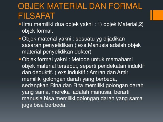 Pengertian Filsafat Pengertian filsafat merupakan suatu ilmu pengetahuan yang menggunakan logika metode serta juga sistem dalam mengkaji masalah umum. Berikut contoh latihan soal terkait materi objek material dan formal geografi. Sedangkan Obyek formal filsafat ilmu menyelidiki segala sesuatu itu guna mengerti sedalam dalamnya atau mengerti obyek material itu secara hakiki mengerti kodrat segala.
