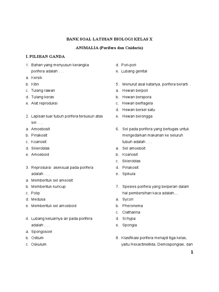 Porifera Menurut Pratiwi et al. Seksual ialah proses reproduksi dari hewan porifera dengan adnaya peleburan sperma yang asalnya dari organisme jantan serta ovum dari organisme si betina. Kali ini admin akan memberikan beberapa contoh soal dan jawaban tentang hewan Porifera moga bermanfaat 1.